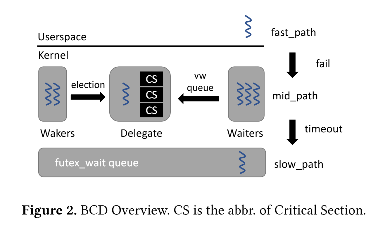 The magic of this paper is that it shows how to change the OS kernel to automatically implement delegation for any application that uses futexes. When the futex code gives up trying to acquire a futex in user space, it calls the OS to wait on the futex. The implementation of this system call is changed to implement automatic delegation. Automatic delegation can fail (as illustrated by Fig. 2), in which case the traditional futex waiting algorithm is used.