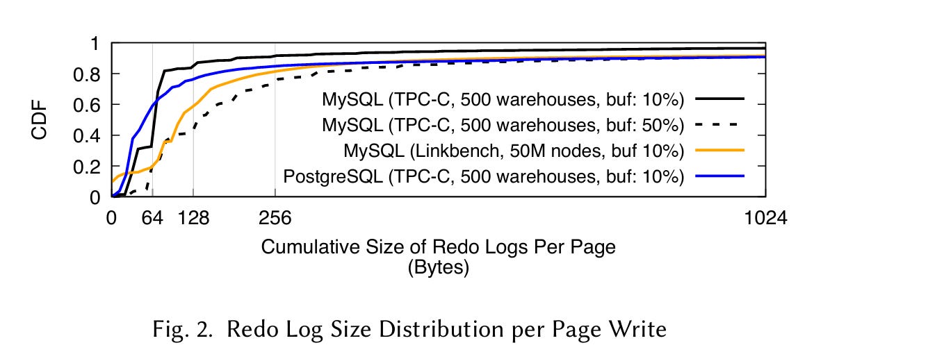 The key observation from this paper is that when a page is evicted, it is typically “mostly clean”. For example, a 4KiB page written to disk may only have 128 dirty bytes (the rest were not updated since the page was read from SSD). However, the storage stack (SW and HW) requires the entire page to be written to disk.