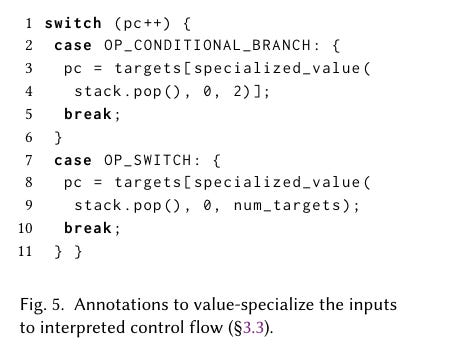 }Fig. 5 shows examples of how an interpreter can call specialized_value to implement dynamic branching: