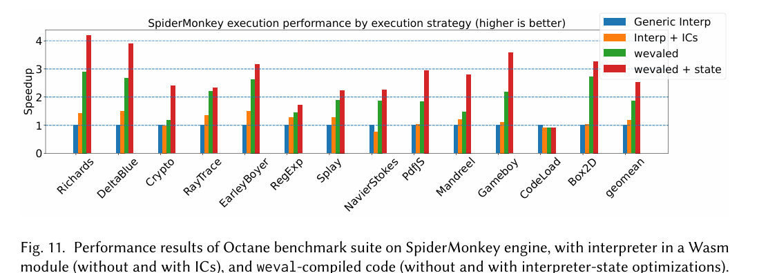 In case that didn’t make sense, let me say that another way. Say the interpreter is written in C, the language it interprets is Python. Say a user wants to only execute the interpreter for one program (PyHearts++), but wants to run it fast. The user runs a tool which specializes the interpreter for PyHearts++. Both the interpreter source code (written in C), and the application {source,byte}code (PyHearts++, written in Python) are given as input to the specializer, and out pops C code for an interpreter which can only execute PyHearts++ (the specialized interpreter doesn’t need the PyHearts++ {source,byte}code as input). The specialized interpreter can be compiled with a standard C compiler to produce a binary image which is equivalent to compiling PyHearts++ to machine code.