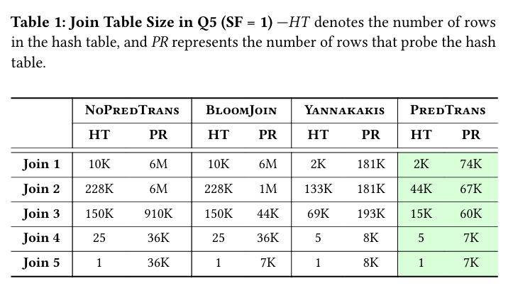 Table 1 shows the massive reduction in the number of rows processed by each join in Q5: