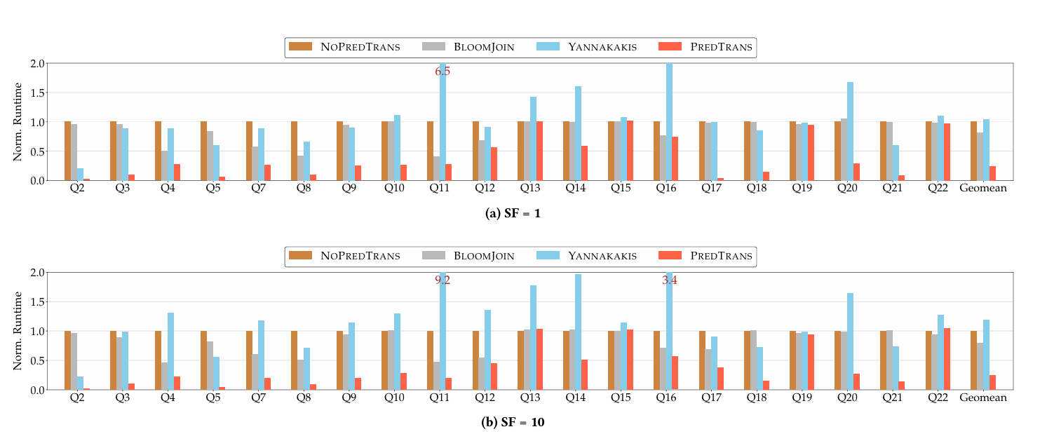 For people who are interested, there is also another work in this year SIGMOD ("Debunking the Myth of Join Ordering: Toward Robust SQL Analytics") that demonstrates the robustness of predicate transfer to random join orders.