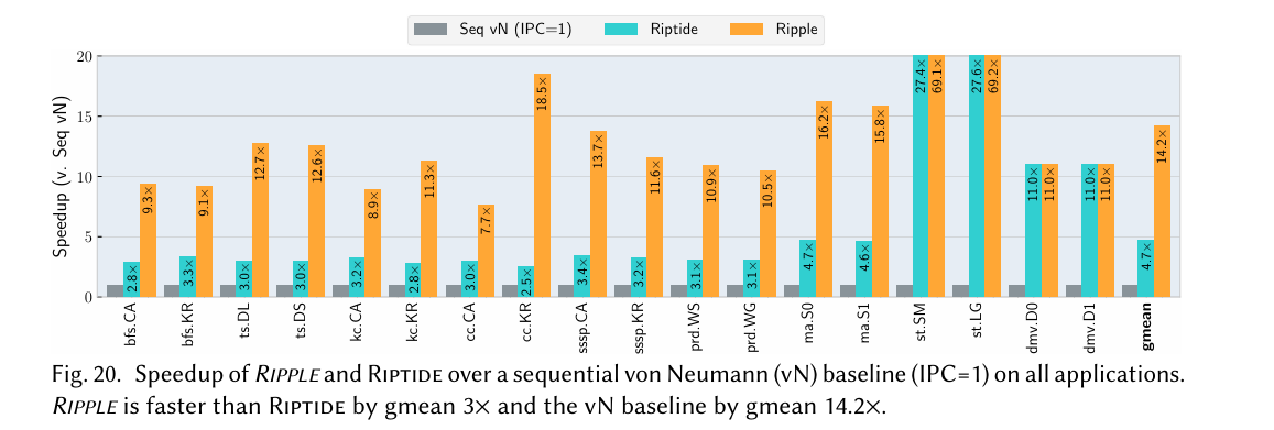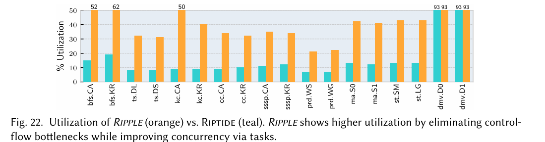 Fig. 22 goes into more detail about why Ripple outperforms Riptide (better utilization of the inherent parallelism of hardware):